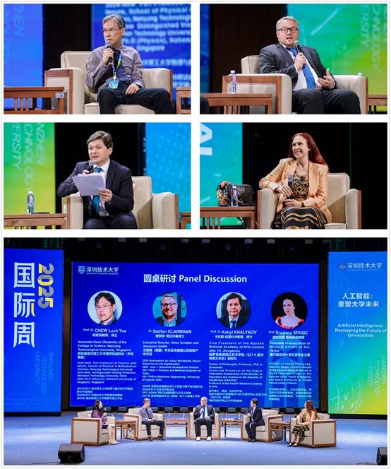 At the panel discussion, four guest speakers shared their insights on AI’s impact. Assoc. Prof. Zeng Siyu, director of the International Cooperation and Exchanges Department of SZTU, moderated the discussion. The speakers included Prof. Chew Lock Yue, associate dean of the College of Science of Nanyang Technological University; Dr. Steffen Klarmann, advanced industrial director of Valeo Schalter und Sensoren GmbH; Prof. Kabyl Khalykov, vice rector for research of Kazakh National Academy of Arts; and Prof. Dragana Spasic, president of Association of Musical Artists of Niš, Serbia. Their discussions highlighted the use of AI for personalized student feedback, the need to align engineering education with real-world industry projects, the integration of AI into arts education, and the importance of maintaining human empathy and ethical judgment alongside AI adoption.