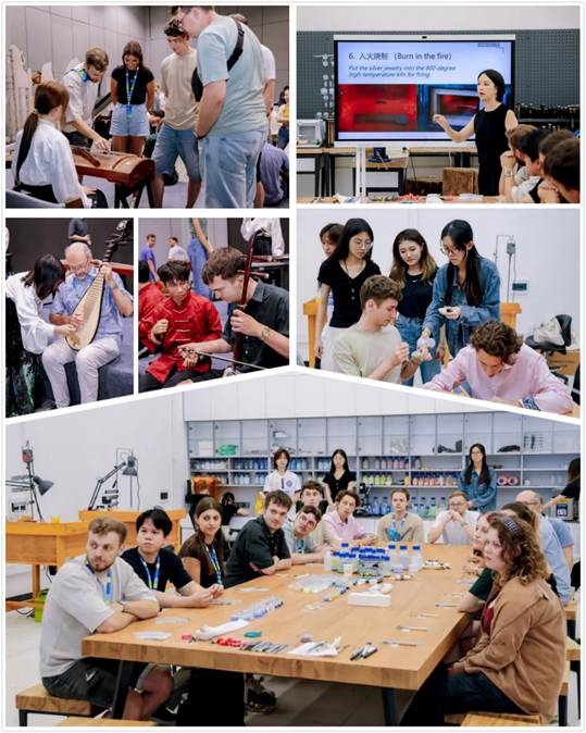 On September 25, the international guests explored the School of Music and School of Design and Innovation, immersing themselves in traditional Chinese culture through experience classes of Chinese folk music, calligraphy, and enamel craftsmanship.