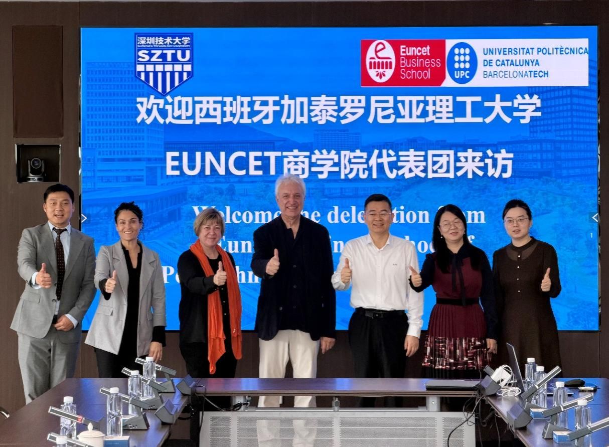 On November 12, a delegation led by Rafael Niubo, chairman of the Board of Directors of Euncet Business School, Polytechnic University of Catalonia (UPC), visited Shenzhen Technology University (SZTU). Prof. Ming Zhong, vice president of SZTU, and relevant department heads had discussions with the delegation, focusing on topics such as direct-entry master’s programs, short-term exchange projects, and international platforms under the MOU signed by the two parties in 2024.